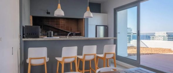 Disfrutá de nuestros apartamentos totalmente equipados, ideales tanto para vacaciones como para home office, con WiFi de fibra óptica, Smart TVs, aire acondicionado y estacionamiento cubierto – vigilado.