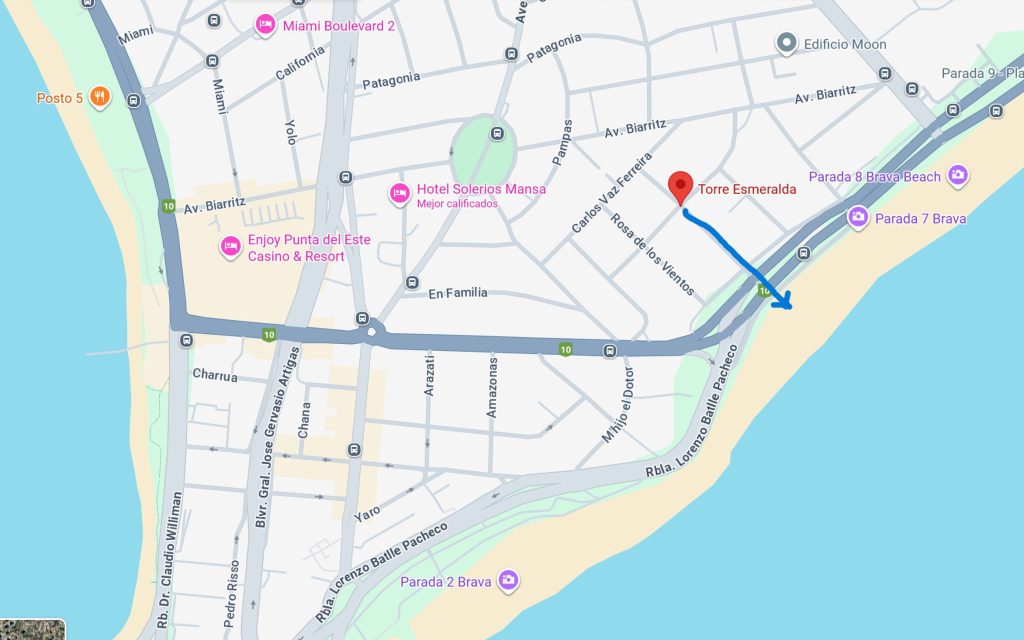 Parada 6 de Playa Brava: acceso caminando a playas, restaurantes y zonas comerciales.